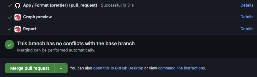 With this integration, you'll be able to see the status of the preview/report generation process right in your pull request: