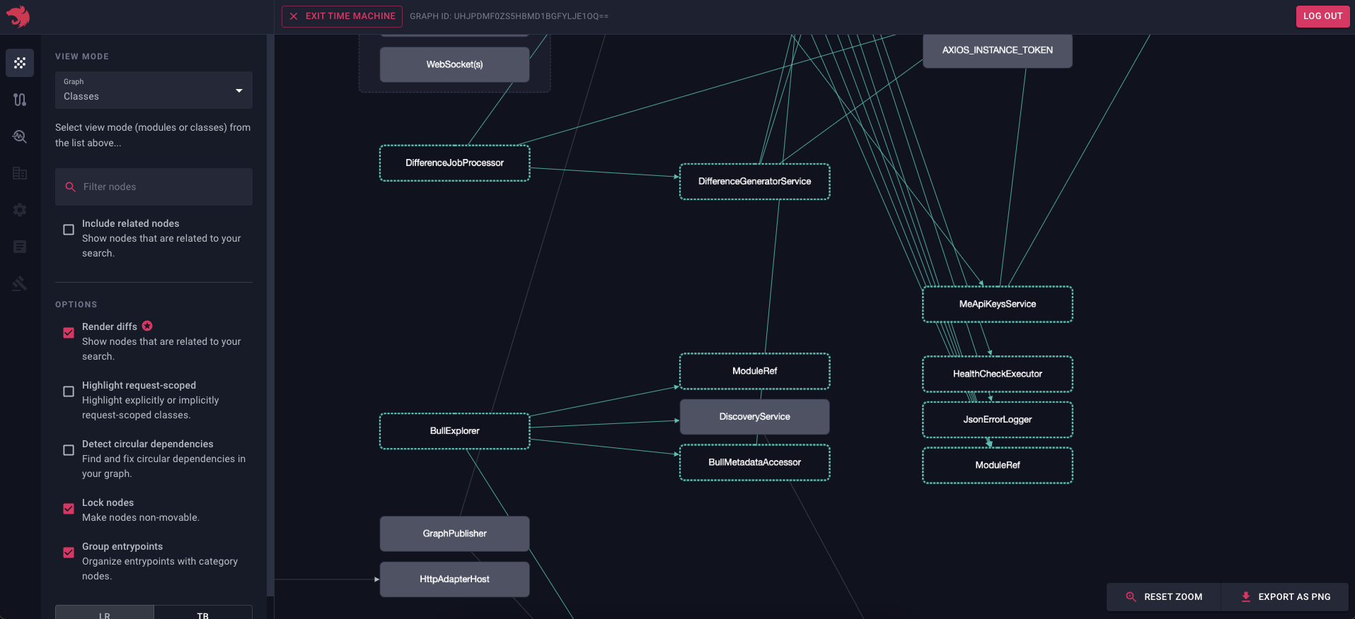 The ability to go back in time lets you investigate and troubleshoot the issue by comparing the current graph with the previous one. Depending on how you set things up, every pull request (or even every commit) will have a corresponding snapshot in the registry, so you can easily go back in time and see what changed. Think of Devtools as a Git but with an understanding of how Nest constructs your application graph, and with the ability to visualize it.