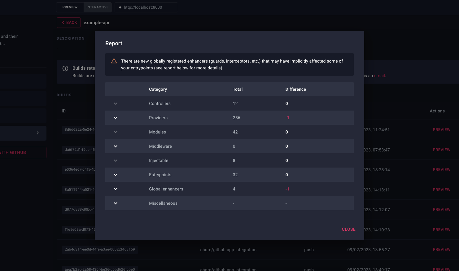 This is particularly helpful in identifying changes that may have gone unnoticed during code reviews. For instance, let's say someone has changed the scope of a deeply nested provider. This change might not be immediately obvious to the reviewer, but with Devtools, we can easily spot such changes and make sure that they're intentional. Or if we remove a guard from a specific endpoint, it will show up as affected in the report. Now if we didn't have integration or e2e tests for that route, we might not notice that it's no longer protected, and by the time we do, it could be too late.